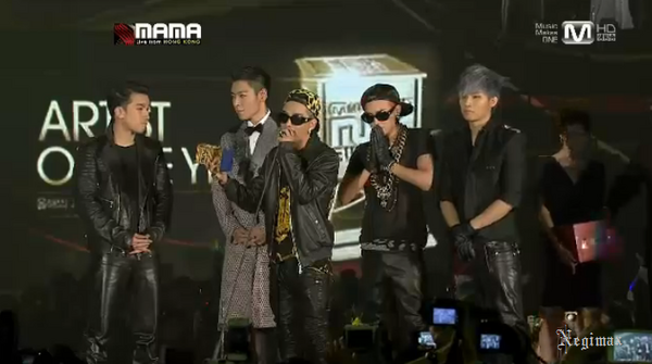 一开场就以帅气+萌样的龙龙 有看mama的VIP们都知道BIGBANG的出场让人担心+紧张! 因为一开始到拿奖为止只有队长志龙的出现! 大家都在担心到底那4只有没有来还是... |